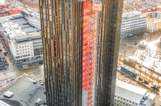 By using off-site method, we prepare nearly complete façade elements at the factory, with features like blinds, ventilation, fire-safety solutions, and more already installed.
