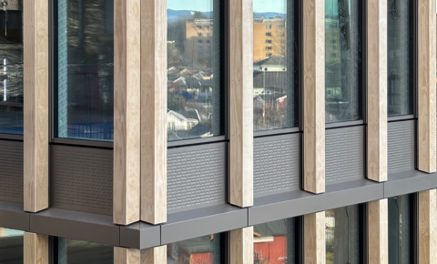 Campus Ullevål ēka izceļas ar ilgtspējīgiem risinājumiem, un tās apdarē izmantotas Jaunzēlandes priedes lameles.
