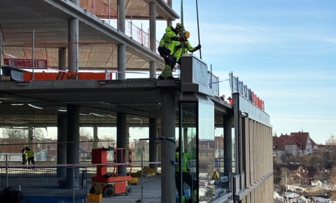 Lai nodrošinātu raitu projekta gaitu un savlaicīgu izpildi, būvobjektā vienlaikus strādā trīs torņu celtņi.